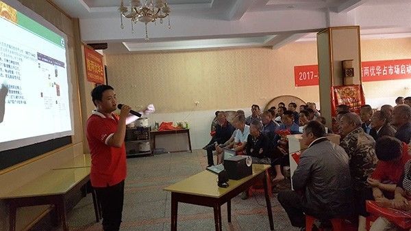 隨后,大家返回江陵灘橋鎮(zhèn)開展市場(chǎng)啟動(dòng)會(huì),會(huì)議開始,首先由荊州經(jīng)銷商孫友軍致開場(chǎng)詞,緊接著由亞華湖北分公司喬炳輝給在場(chǎng)農(nóng)戶介紹了公司及隆兩優(yōu)華占的相關(guān)信息,隨后由亞華湖北分公司陳小雙做了相關(guān)補(bǔ)充,并對(duì)之后的工作安排和相關(guān)政策進(jìn)行了詳細(xì)講解,最后在當(dāng)?shù)亓闶凵谈独习宓闹鞒窒麻_始訂購,本次會(huì)議預(yù)期到場(chǎng)100人,實(shí)際到場(chǎng)300人,訂購場(chǎng)面異常火爆!