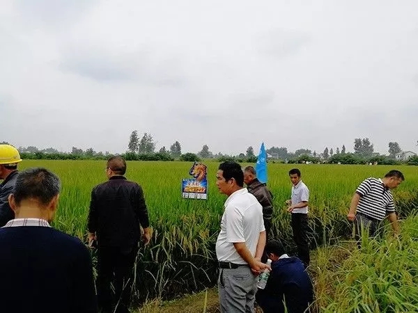 到達(dá)隆王稻田間后,經(jīng)銷商和大戶們仔細(xì)查看了隆王稻的結(jié)實(shí)率、是否倒伏及是否有病蟲害現(xiàn)象等,紛紛對隆王稻贊賞有加。整個(gè)隆王稻田塊沒有一處倒伏,也沒有病蟲害影響,整體長勢特別齊整好看。鄉(xiāng)鎮(zhèn)經(jīng)銷商許大叔更是說到,這塊隆王稻底肥只施了40%含量的復(fù)合肥40斤,后期也只追了一次10斤的尿素和一次25斤45%含量的復(fù)合肥,但是隆王稻的有效穗、穗長及結(jié)實(shí)率都讓他喜出望外,在一般水肥管理的情況下,許大叔和在場的經(jīng)銷商、大戶都表示隆王稻的畝產(chǎn)干谷肯定不得低于1600斤,甚至1600斤以上。