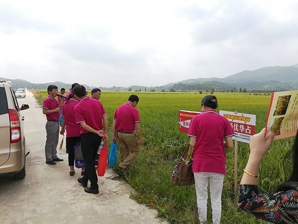 9月29日上午8點(diǎn),原本僻靜的東新農(nóng)場(chǎng)突然變得熱鬧起來(lái),原來(lái)是永修第一場(chǎng)“隆兩優(yōu)華占”觀摩大會(huì)拉開了序幕。參加此次會(huì)議的有永修縣農(nóng)業(yè)局副局長(zhǎng)、管理局局長(zhǎng)、植保站站長(zhǎng)等農(nóng)業(yè)部門領(lǐng)導(dǎo),及代理商饒總和五六十位零售。此次觀摩會(huì)的田塊是農(nóng)業(yè)局的示范點(diǎn),品種很多,這樣也可以讓零售商們更直觀地認(rèn)識(shí)隆兩優(yōu)華占。