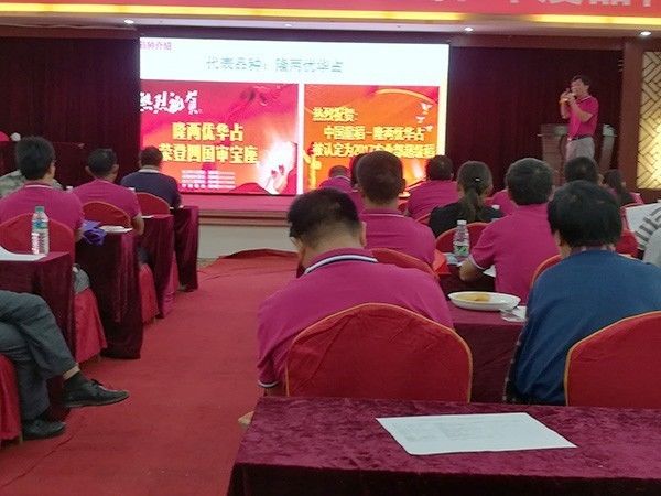 在看到示范田里隆兩優(yōu)華占的表現(xiàn)后,零售商紛紛表示了對(duì)隆兩優(yōu)華占的認(rèn)可。隨后饒總著重介紹了隆兩優(yōu)華占的特征特性(超優(yōu)質(zhì)、超抗倒、超抗病、超高產(chǎn)、廣適性)。介紹完之后,饒總對(duì)隆兩優(yōu)華占的三大榮譽(yù)進(jìn)行了闡述:2017年農(nóng)業(yè)部超級(jí)稻、四國(guó)審品種、2017水稻年度明星品種。在場(chǎng)的零售商都表示十分看好隆兩優(yōu)華占這個(gè)品種,明年要更加大力度推廣。