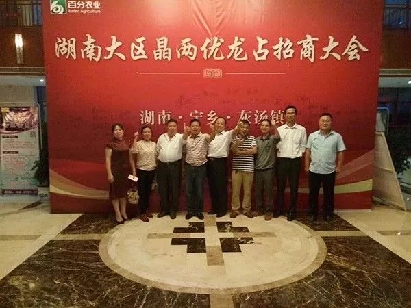 2017年9月30日,在湖南寧鄉(xiāng)的旅游鄉(xiāng)鎮(zhèn)——灰湯召開了晶兩優(yōu)龍占的盛會(huì)。由湖南百分農(nóng)業(yè)科技有限公司(以下簡(jiǎn)稱百分農(nóng)業(yè))湖南隆王團(tuán)隊(duì)舉辦的晶兩優(yōu)龍占觀摩暨市場(chǎng)啟動(dòng)大會(huì)在灰湯金太陽(yáng)溫泉農(nóng)莊盛大召開。百分農(nóng)業(yè)總經(jīng)理江潤(rùn)良先生攜各大區(qū)負(fù)責(zé)人及湖南省內(nèi)的100余位核心經(jīng)銷商、種植大戶參加了此次會(huì)議,為打造晶兩優(yōu)系列的龍頭產(chǎn)品——晶兩優(yōu)龍占而共同出謀劃策。