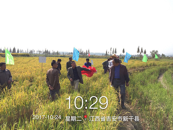 2017年10月24日,江西省新干縣召開了隆兩優(yōu)華占再生稻零售商觀摩及種植大戶預(yù)定會(huì)議,全縣各鄉(xiāng)鎮(zhèn)零售商和種植大戶等40余人前往七琴鎮(zhèn)現(xiàn)場(chǎng)觀摩。