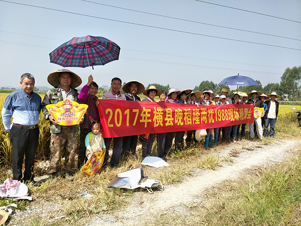 此次觀摩的位置在校椅鎮(zhèn)六蘭村,圍繞田邊種著瓜果,前后有四塊不同位置的隆兩優(yōu)1988,大家對種植水平、管理到位等問題紛紛發(fā)表意見。今年沒有種的鄉(xiāng)民都在問明年什么時候有種子賣,看著很不錯的收成,一看就穩(wěn)產(chǎn),也沒有病害。零售商對品種也表示滿意,堅定了明年的銷售信心。