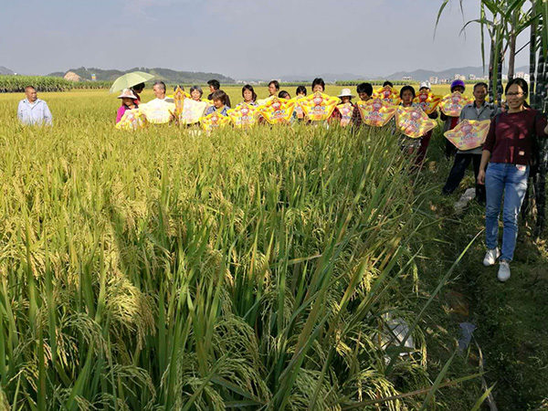 據(jù)零售商黃姐介紹,今年百合鎮(zhèn)共賣種20幾件隆兩優(yōu)1988,大盧村更是爭(zhēng)氣, 在種植水平上遠(yuǎn)超其它村落,省心省力。民風(fēng)純樸的鄉(xiāng)民們笑咪咪的折過一旁的果蔗,熱情地遞過來。接著說,今年到處有病害,但這個(gè)品種沒有格外多操心,好品種省心。大家爭(zhēng)相帶路去看隆兩優(yōu)1988的表現(xiàn),看著一片片豐收在即的稻田,喜悅的心情無以言表。