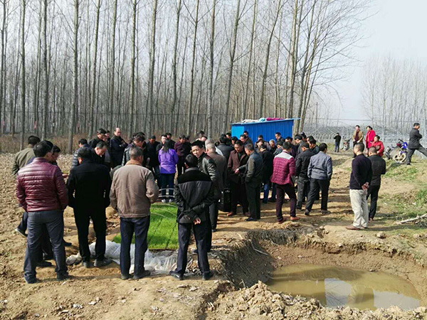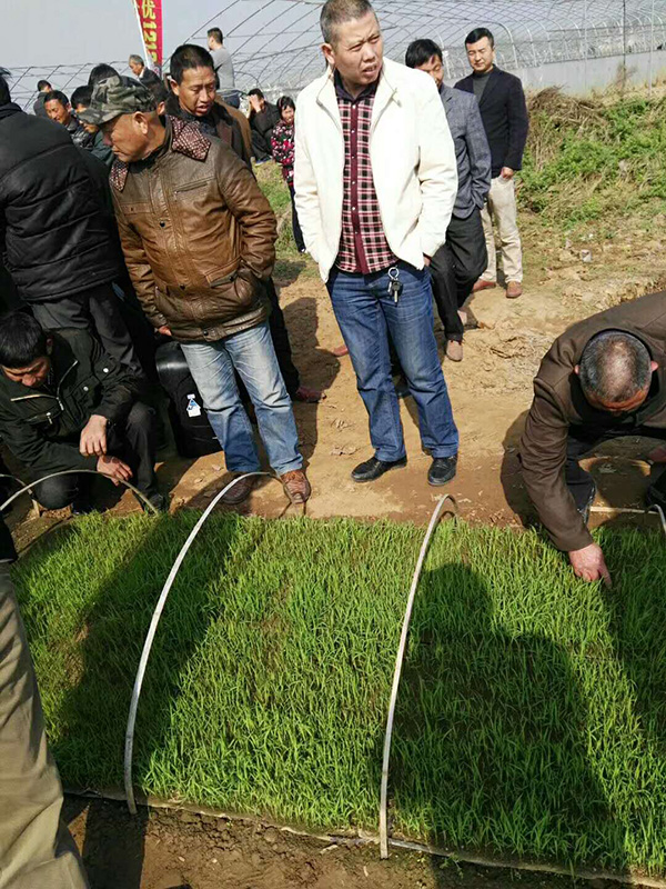 上午九點多,一行人先趕往環(huán)潭鎮(zhèn)黃林村觀看運用印刷播種技術育秧的晶兩優(yōu)1212。在如此低溫的情況下,晶兩優(yōu)1212仍能有非常不錯的出芽率及出苗齊的特點,大家對此給予了極高的評價。隨后,由戴經(jīng)理現(xiàn)場為大家演示印刷播種的操作流程,并將去年的印刷紙與今年的進行對比,凸顯了公司對這一技術的不斷創(chuàng)新。印刷播種技術以其省時省工省錢的特點得到了在場所有人的極大認同,非??春闷鋺们熬?。有種植大戶表示,有了這個技術,5分鐘最起碼能播100個盤,這種能掙錢的好東西,明年得搞個20畝試試。
