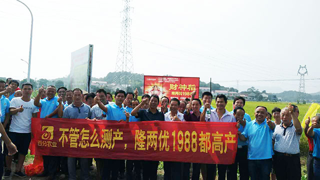 每個環(huán)節(jié)扎實完成,“工作做到位了,才對得起自己,對得起相信我們的農(nóng)戶和寄予厚望的公司”老朱說。隆兩優(yōu)1988正是這樣從老朱手里一步一步成長起來的。還記得上次4月底去拜訪他的時候,他因為上車下車搬種子把腰給扭了,不僅不抱怨,還很自娛自樂的說:“現(xiàn)在一心只想著賣種子,都不敢想過些天種子賣完了沒事做了,干嘛去呢?那一定會很空虛很無聊吧,賣種子才能讓我充實啊。”說完拍了拍肩上的灰,揉了揉扭傷的腰,一陣哈哈大笑起來。時光荏苒,雖年過半百,老朱臉上還是一點也看不出衰老的痕跡,我想這應該就是笑容的力量吧!