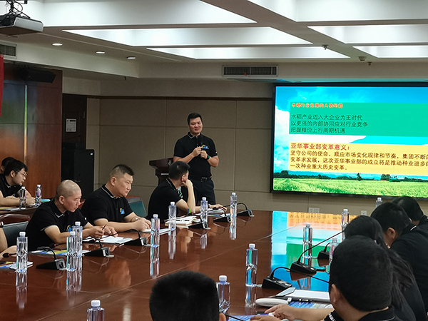 會議第一項:亞華品牌營銷總監(jiān)洪祥對隆平高科亞華水稻事業(yè)部成立以及瑋兩優(yōu)8612全國運作模式作了詳細的介紹,洪總針對當前國家對糧食安全、種業(yè)行業(yè)的重視程度客觀的分析了隆平高科亞華水稻事業(yè)部成立的意義及重要性,同時介紹了瑋兩優(yōu)8612品種的定位和運作規(guī)劃以及新一代大單品打造的工作推進和組織保障。公司將上下聯(lián)動、凝心聚力打造第一大單品。