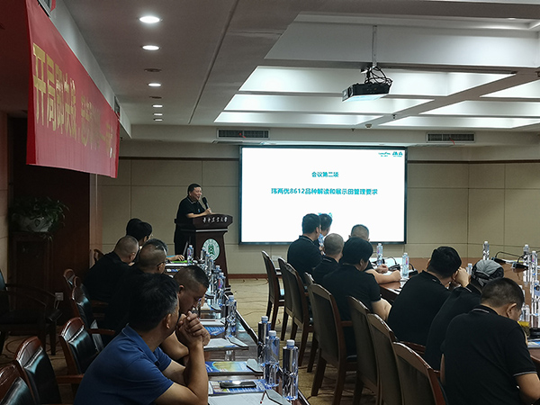 會議第二項:技術專家姜文嘉對瑋兩優(yōu)8612品種進行了詳細解讀,瑋兩優(yōu)8612源自隆平高科新一代核心不育系的超級中稻品種,該品種含6個稻瘟病抗病基因,3個氮高效基因,1個矮桿基因,米質(zhì)透明度1級,其品種的安全性和技術含金量超前。另外姜總也就近期示范田建設,督查情況進行了通報,并對后期管理提出了具體要求和建議。