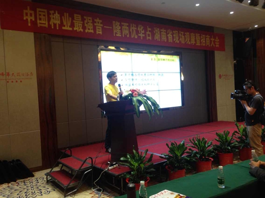 觀摩完畢后,大家乘車回到酒店會(huì)議室,舉行招商大會(huì)。會(huì)議由湖南亞華種子有限公司營銷中心副總何潑主持。首先由亞華公司總經(jīng)理助理張來友向各位參會(huì)的合伙伙伴致歡迎辭。種植專家副總王小清,對(duì)全國各地的種植表現(xiàn)以及隆兩優(yōu)華占的特征特性,進(jìn)行了生動(dòng)詳實(shí)的介紹。