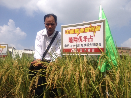 2014年11月1日,在素有“廣西糧倉(cāng)”之稱的貴港市,經(jīng)銷商潘漢東組織港南、港北、覃潭三區(qū)的20多位重點(diǎn)鄉(xiāng)鎮(zhèn)經(jīng)銷商,齊聚港南區(qū)新塘鄉(xiāng)觀摩亞華種業(yè)重磅推出的戰(zhàn)略性新品種-“中國(guó)龍稻”隆兩優(yōu)華占。