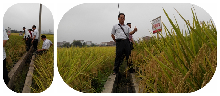 經(jīng)銷商們來到高產(chǎn)示范片,對深兩優(yōu)5814的生長情況進(jìn)行了解,并聽取了高州市種子經(jīng)營部總經(jīng)理鄭信權(quán)對品種優(yōu)勢的介紹:“深兩優(yōu)5814是清華大學(xué)最新科研成果,Y58S系列中米質(zhì)更優(yōu)的超級稻品種,也是國、粵雙審的高產(chǎn)品種,2010年農(nóng)業(yè)部驗(yàn)收畝產(chǎn)達(dá)870.5公斤,是一個集高產(chǎn),抗病,優(yōu)質(zhì)于一身的好品種。”
