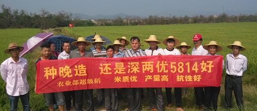 2014年10月18號(hào),湖南亞華種子有限公司廣東陽江地區(qū)陽西縣代理商李希愉召集各個(gè)鄉(xiāng)鎮(zhèn)的零售商,隆重舉行深兩優(yōu)5814的現(xiàn)場觀摩會(huì)。李希愉對這次零售商現(xiàn)場觀摩會(huì)特別重視,準(zhǔn)備非常充分。觀摩會(huì)現(xiàn)場不僅有陽西電視臺(tái)全程報(bào)道,還有南方農(nóng)村報(bào)記者全程參與報(bào)道。