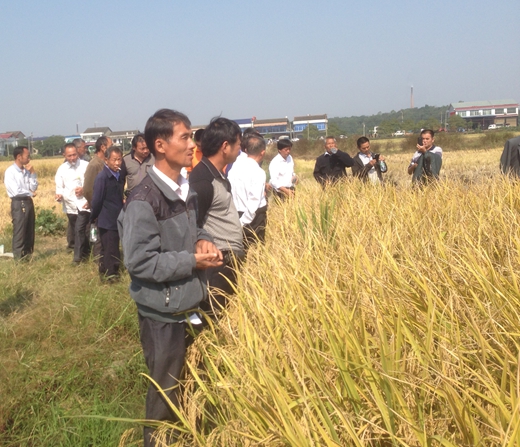 10月8日上午10點,天高氣爽,希望的田野迎來豐收的喜悅,由寧鄉(xiāng)寧農(nóng)農(nóng)資公司組織寧鄉(xiāng)各鄉(xiāng)鎮(zhèn)的近200位朋友齊聚寧鄉(xiāng)清華鋪鄉(xiāng)洪倫山村張海燕(15974229795)的田塊進行現(xiàn)場觀摩測產(chǎn)。