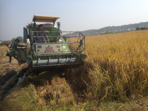 觀摩后,現(xiàn)場測產(chǎn)也開始了,收割機在田間來回收割稻穗,田邊有的在抬谷袋子,有人稱谷,有的丈量田的面積,沉甸甸谷子看著讓人陶醉,在近200人的監(jiān)督見證下,現(xiàn)場測產(chǎn)實打?qū)嵤照酆细晒犬€產(chǎn)1504斤。