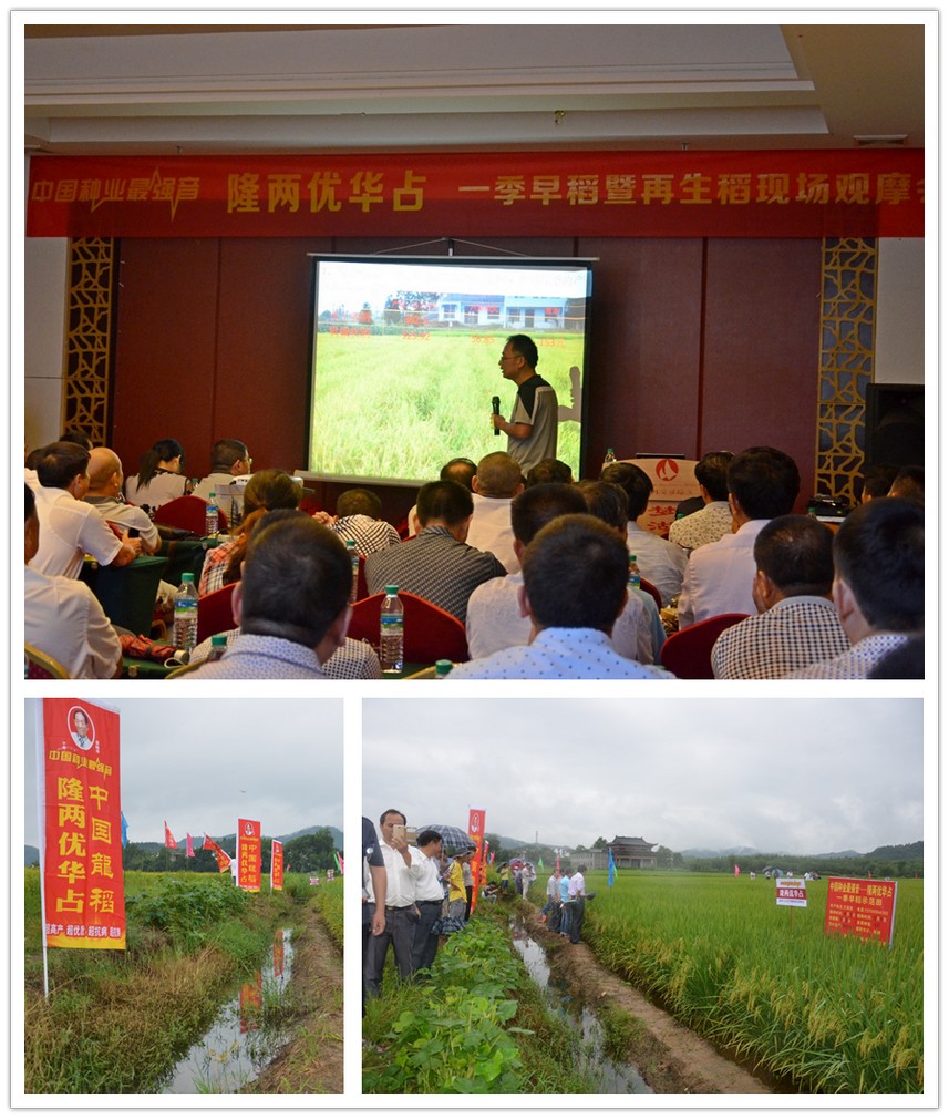 2015年8月9日“蘇迪羅”臺風過境江西,狂風暴雨也沒能擋住大家對中國種業(yè)最強音----隆兩優(yōu)華占的期望與向往,全省130多位經銷商、零售商、種田大戶齊聚才子之鄉(xiāng)----臨川,觀摩隆兩優(yōu)華占早稻+再生現場和共同商討、啟動2016年隆兩優(yōu)華占預定。