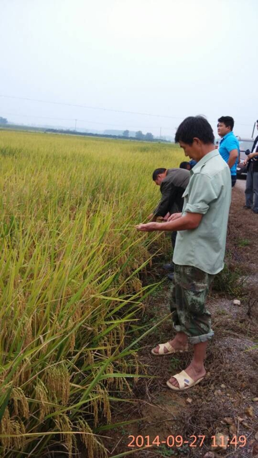 2014年9月27日,在鳳陽(yáng)縣代理商郭守福的組織下,亞華種業(yè)口糧稻深兩優(yōu)5183現(xiàn)場(chǎng)觀摩會(huì)勝召開(kāi)。參加會(huì)議的零售商有二十多人,在代理商郭守福帶領(lǐng)下,一行人看了四塊田塊。這幾塊田在不同鄉(xiāng)鎮(zhèn),由不同農(nóng)戶種植,土壤條件、肥力水平、種植技術(shù)層次不一,有熟透馬上就能收割的,有遲一點(diǎn)還在落色 變黃的,有肥力好的,有剛剛整改過(guò)肥力跟不上的,但正好從各個(gè)方面深度表現(xiàn)了深兩優(yōu)5183的田間特點(diǎn)。所有田塊均稻曲病輕微,也沒(méi)有發(fā)生流行穗頸瘟,各位零售商對(duì)此均是稱贊不已。大家下田數(shù)分蘗,看 結(jié)實(shí),檢驗(yàn)抗倒性,沒(méi)有一點(diǎn)能被挑剔的,特別是李二莊的種植戶,他一直跟著我們看了所有田塊,對(duì)5183更是非常滿意,多次當(dāng)眾表示來(lái)年要加大種植面積。此次會(huì)議的召開(kāi),給參會(huì)人員留下了深刻的好印象,紛紛表示這才是鳳陽(yáng)需要的超級(jí)稻!