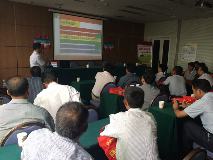 回到會(huì)議室,張來友先生代表湖南亞華種子有限公司首先介紹了公司的基本情況,科研實(shí)力、并詳細(xì)介紹了隆兩優(yōu)華占的種植方法,良種要配良法,良法到位,想不增產(chǎn)都難啊!