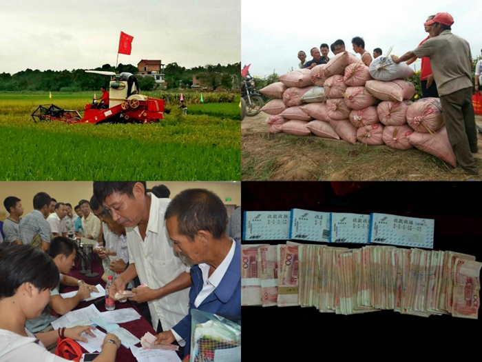 經過二十分鐘的收割,大家最期待的現(xiàn)場稱重測產正式開始,只見一袋袋稻谷被搬到電子秤,工作人員迅速進行記錄和統(tǒng)計。經過一番緊張忙碌的工作,結果終于揭曉:弋陽灣里鄉(xiāng)現(xiàn)場實地收割稻田1.01畝,去掉水分實得干谷1804斤,創(chuàng)造弋陽高產新紀錄。在場農戶紛紛豎起大拇指,稱贊隆兩優(yōu)華占名副其實,現(xiàn)場熱情空前高漲。