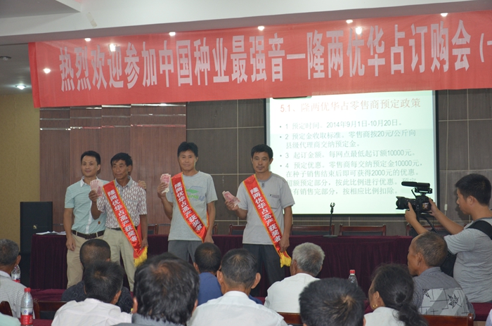 隨后的室內會議里,亞華種業(yè)江西分公司總經理谷恩華向大家介紹了隆兩優(yōu)華占的幾大優(yōu)勢和公司今后幾年的操作思路,并講解了隆兩優(yōu)華占在各地的表現(xiàn)和預定情況。接著種植示范戶向介紹了種植經驗和品種優(yōu)勢?,F(xiàn)場公布估產競猜獎將會議推向高潮,一共有6位經銷商和種植戶獲得估產大獎。