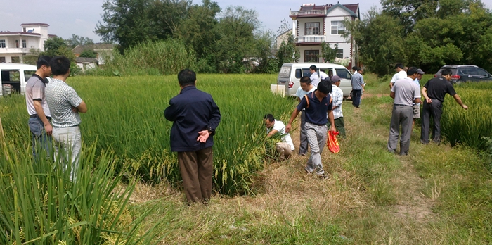 2014年9月22日上午,安徽無為縣客戶李軍組織當?shù)睾诵目蛻粲^摩了由其布點示范的隆兩優(yōu)華占大田現(xiàn)場。參觀的無為縣終端客戶對中國種業(yè)最強音-隆兩優(yōu)華占品種反響熱烈,通過觀摩現(xiàn)場表現(xiàn),大家一致認可隆兩優(yōu)華占品種是高產(chǎn)、穩(wěn)產(chǎn)、高抗的品種。