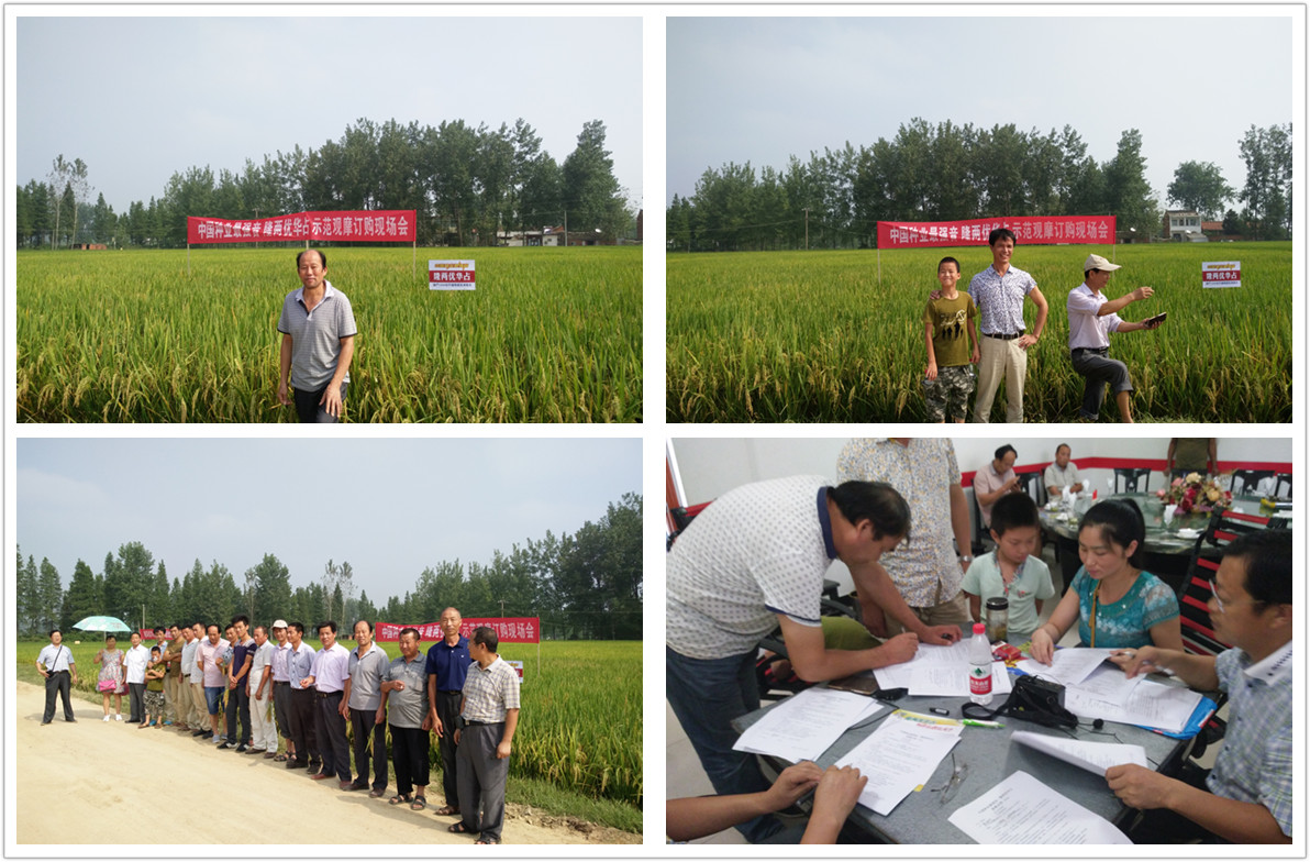 2015年8月23日,羅山縣竹竿鎮(zhèn)張老店村迎來了各鎮(zhèn)的18位核心經(jīng)銷商,來觀摩村上一塊豐收的稻田——中國種業(yè)最強(qiáng)音隆兩優(yōu)華占,葉青籽黃、穗層整齊、稻谷沉甸甸,秀立在田間,等待檢閱。