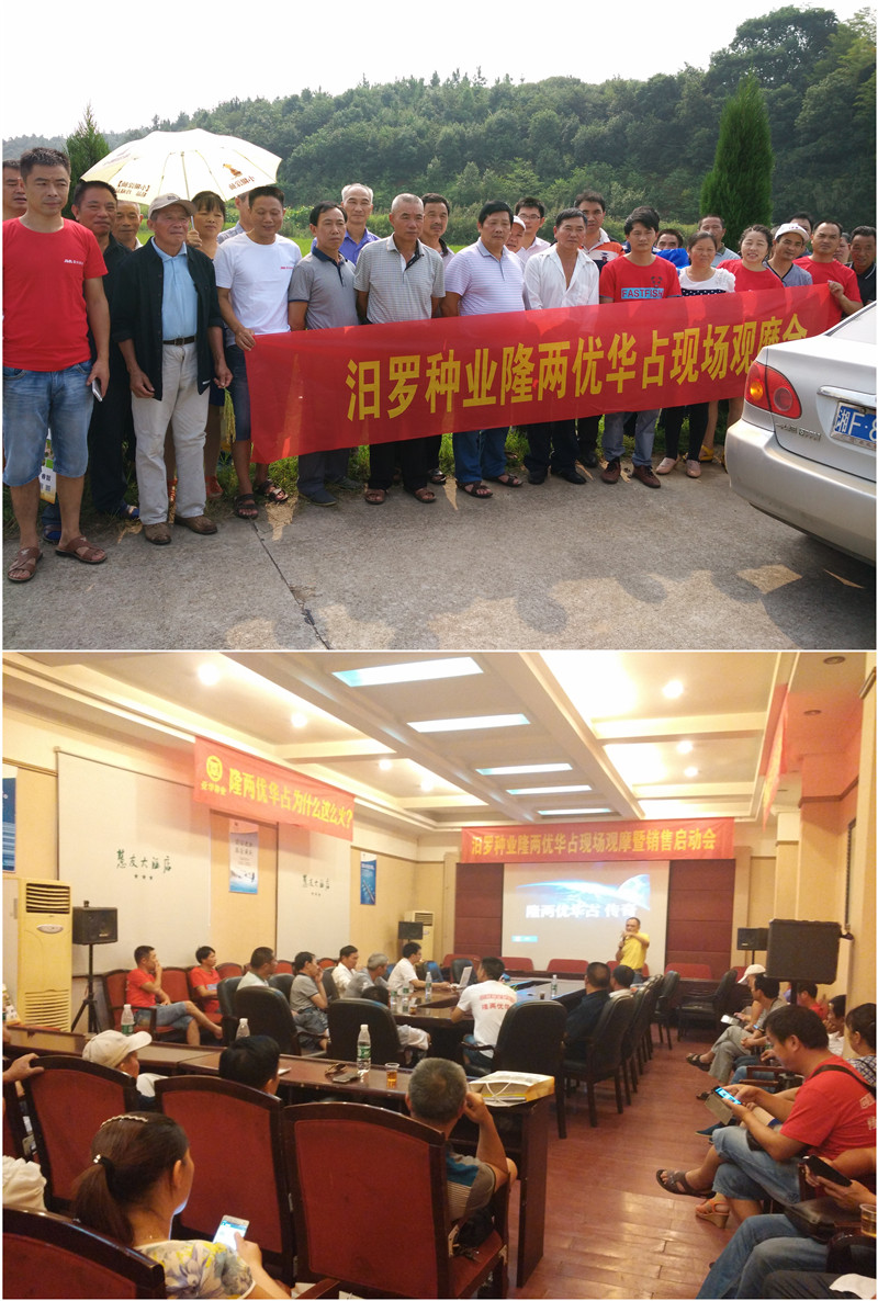 隨后,汨羅市隆兩優(yōu)華占代理商在會議室組織了座談討論會。首先由湖南亞華種子有限公司營銷中心副總何潑就隆兩優(yōu)華占的育種由來、現(xiàn)階段影響、后續(xù)趨勢、預(yù)定運作思路、各地表現(xiàn)、新聞報道等,向與會代表做了細(xì)致地介紹。接著隆兩優(yōu)華占汨羅代理商喻總就隆兩優(yōu)華占預(yù)定的具體操作細(xì)則及相關(guān)政策做了詳細(xì)介紹,并發(fā)表總結(jié)性發(fā)言:具備良好抗性的隆兩優(yōu)華占非常適合在汨羅市種植,而且豐產(chǎn)性好、米質(zhì)優(yōu),希望大家能大力推廣這么好的品種!