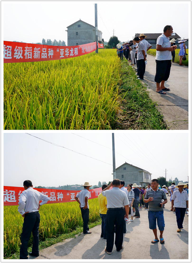 2015年9月6日桃源縣代理商黃繼桃組織全縣經(jīng)銷商近40人,對(duì)漳江鎮(zhèn)梅溪橋村農(nóng)戶楊明元種植的“亞華龍稻”進(jìn)行了現(xiàn)場(chǎng)觀摩,據(jù)與會(huì)人員初步測(cè)產(chǎn),楊明元種植的一丘3.5畝“亞華龍稻”畝產(chǎn)可達(dá)735.6公斤,比大面積種植的其他品種畝增產(chǎn)150.8公斤,增產(chǎn)25.8%。今年全縣6個(gè)鄉(xiāng)鎮(zhèn)種植“亞華龍稻”,種植面積達(dá)到710畝,平均畝產(chǎn)達(dá)到650.8公斤,這樣大面積的產(chǎn)量無(wú)疑代表著成功!