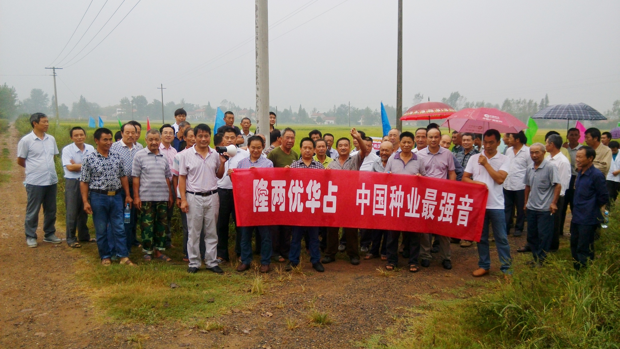 2015年9月4日上午9時(shí)許,湖北省荊門市京山縣的80多位零售商和種田大戶,在代理商張群的帶領(lǐng)下冒雨來到了羅店鎮(zhèn)的隆兩優(yōu)華占示范田中進(jìn)行觀摩。