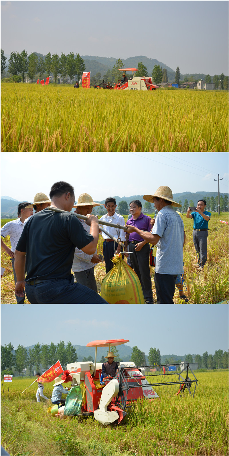為了讓大家共同鑒證隆兩優(yōu)華占的真實實力,現(xiàn)場進行了收割測產。收割機收割了一塊面積在1.2畝左右的田塊,最終實收濕谷22.5袋,每袋平均93斤,平均畝產1743.75斤,干谷超過1400斤(修水農戶種植水平干谷在1000斤左右),獲得了大家的一致好評。該田塊種植戶盧洪玉(電話:15180633212)興奮地說道:“隆兩優(yōu)華占一袋谷子有九十多斤,比其他品種每袋竟然能多出10斤。我買了10斤種子種了11畝田,能達到這樣的產量真是驚喜,要是用足種,產量一定不得了!明年我一定號召村里人都種隆兩優(yōu)華占!”