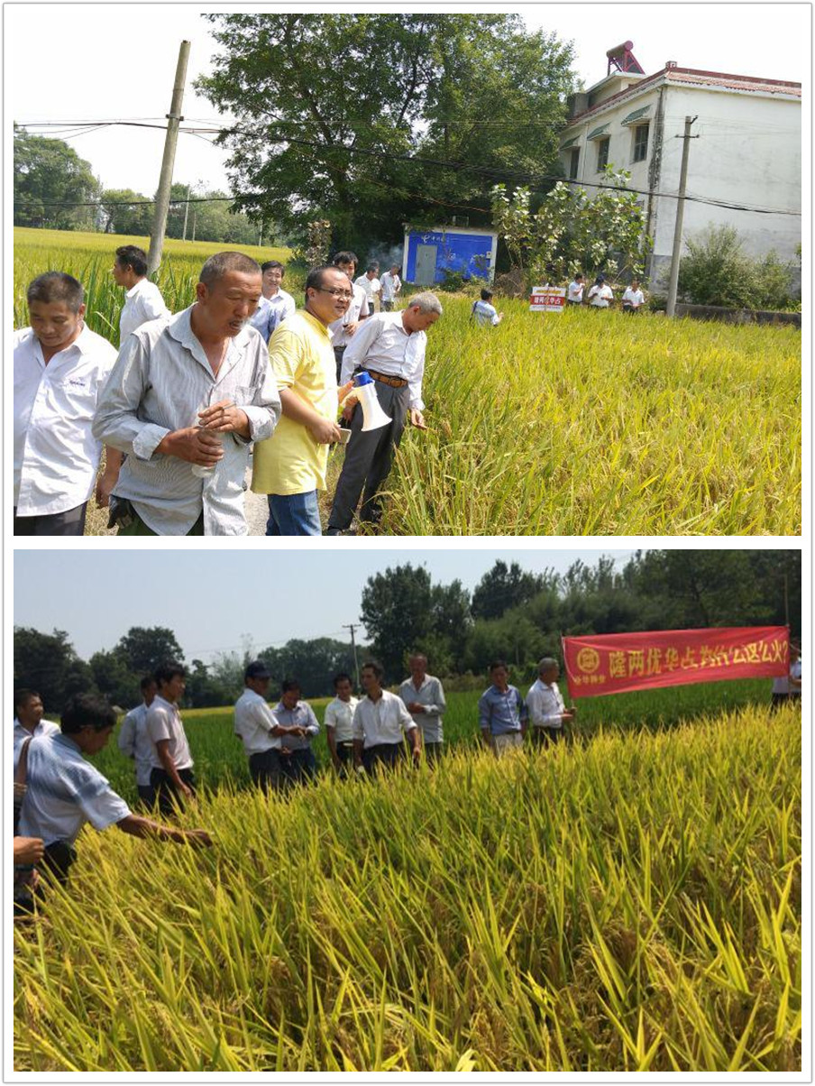 大家在吳總的引導(dǎo)下來(lái)到田邊:“今天請(qǐng)大家來(lái)看看我們今年銷售的、種田大戶種的隆兩優(yōu)華占表現(xiàn)到底怎么樣,首先告訴大家一個(gè)好消息,我們這個(gè)好品種隆兩優(yōu)華占已經(jīng)通過(guò)國(guó)家審定了,有了自己的身份證,審定編號(hào):2015026,不僅僅如此,隆兩優(yōu)華占將通過(guò)全國(guó)四大稻區(qū)的審定,一個(gè)品種能通過(guò)全國(guó)四大稻區(qū)的審定,在國(guó)內(nèi)也找不出來(lái)啊,這說(shuō)明什么?說(shuō)明隆兩優(yōu)華占,1、適應(yīng)性廣2、抗性好,稻瘟病抗性綜合指數(shù)2.2,這樣的抗性不錯(cuò)?。?、抗高溫、耐低溫,2013年的高溫年份、2014年的低溫年份對(duì)隆兩優(yōu)華占的結(jié)實(shí)率沒(méi)有影響,結(jié)實(shí)率都達(dá)到了90%以上4、產(chǎn)量高、米質(zhì)屬于國(guó)家標(biāo)準(zhǔn)一級(jí)米啊,不吃菜都能吃三碗米飯??!5、抗倒伏,是袁隆平院士贊譽(yù)的‘金剛不倒鐵桿超級(jí)稻’”。