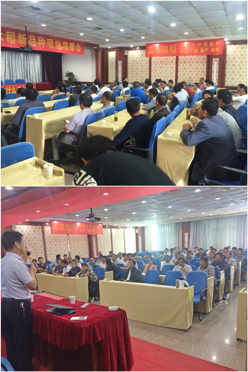 大家回到會(huì)議室,首先亞華種業(yè)區(qū)域經(jīng)理吳陵海向參會(huì)的各位零售商和種田大戶,介紹了隆兩優(yōu)華占的特征、特性,分享了隆兩優(yōu)華占在全國(guó)各省各縣、山區(qū)、丘陵、平原的表現(xiàn)情況,采用機(jī)插秧、移栽、直播等方式種植的隆兩優(yōu)華占的表現(xiàn)情況,大戶們的情緒很高,紛紛表示:明年就種它-----隆兩優(yōu)華占!