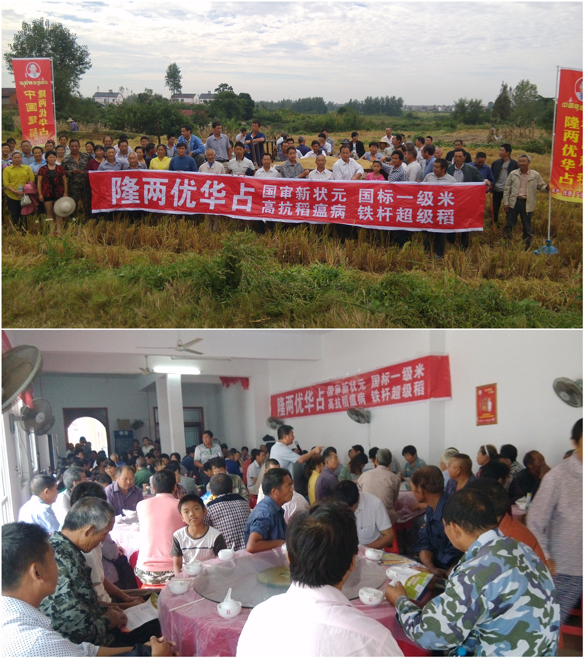 2015年9月12日,鐘祥代理商朱小林和長灘鎮(zhèn)零售商胡俊清在長灘鎮(zhèn)的同心村5組召開了一場令人難忘的隆兩優(yōu)華占測產(chǎn)會。