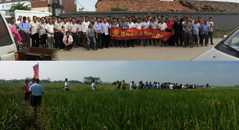 2015年9月29號(hào),伴隨著臺(tái)風(fēng)“杜鵑”的到來,江西地區(qū)天氣驟變,臺(tái)風(fēng)肆虐后,很多品種都出現(xiàn)了不同程度的倒伏,隆兩優(yōu)華占依然以挺拔的身姿迎來了120位零售商與種糧大戶來參加觀摩會(huì)。