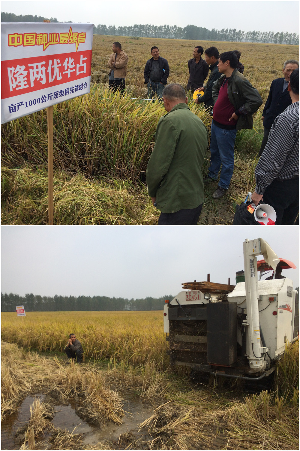 漢川代理商許合斌說(shuō):“隆兩優(yōu)華占的產(chǎn)量,要是只有2.2斤/平方,我絕對(duì)不會(huì)叫大家來(lái)看!收割機(jī)來(lái)了,我們收了看!”