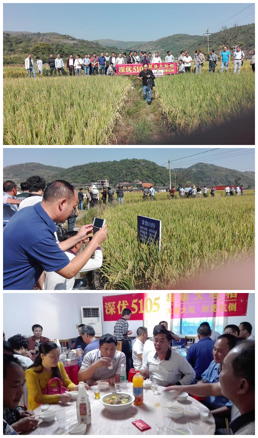 席開五桌,吃飯前,糧油站領(lǐng)導石春亮向大家表示深優(yōu)5105在宜章可做為晚稻和煙后稻重點推廣,亞華種業(yè)陳德文給大家介紹了亞華種業(yè)的發(fā)展形式及深優(yōu)5105的特征特性,與會人員高度認同深優(yōu)5105在宜章做為重點推廣的意見。飯后,大家自發(fā)的到石總辦公室索要深優(yōu)5105的宣傳資料,要把這個好品種盡快的向農(nóng)戶做宣傳介紹。