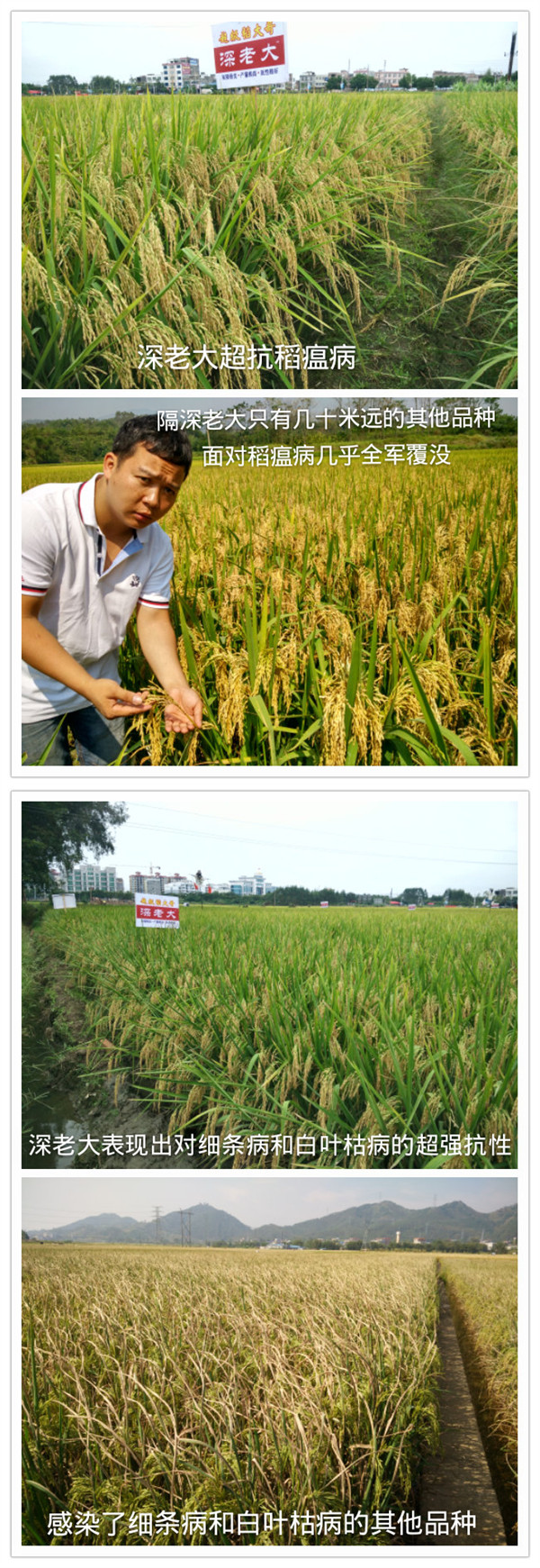 廣西橫縣是當之無愧的中國茉莉花之鄉(xiāng)。然而,在這個秋天,成片成片的水稻細條病和白葉枯病讓部分沉浸在花海之中的農民笑不起來,在細菌性病害肆虐的情況下今年橫縣的水稻種植情況非常不理想,但有一個品種卻表現出超強的抗性,這就是““深老大””。經過今年幾千畝的小面積推廣,“深老大”無論在產量、抗性、米質方面已經表現出了強大的生命力,特別是對水稻細菌性病害——細條病和白葉枯病有超強抗性,相較其他優(yōu)質品種來說優(yōu)勢依然特別明顯。