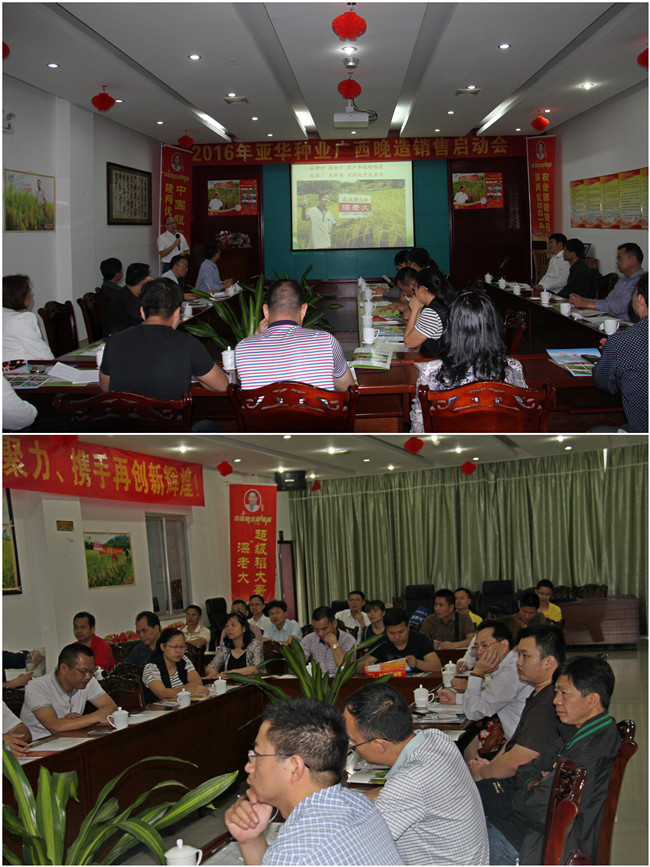 2016年早稻銷售剛一結(jié)束,亞華種業(yè)廣西分公司就擂響了晚稻銷售的戰(zhàn)鼓!4月24日,桂南晚稻區(qū)的30多位代理商悉數(shù)齊聚綠城南寧,參加廣西亞華種業(yè)2016年度桂南晚稻市場(chǎng)啟動(dòng)會(huì),總結(jié)成績(jī)、分析市場(chǎng),共商共謀“深兩優(yōu)5814”新年度的運(yùn)作之道!