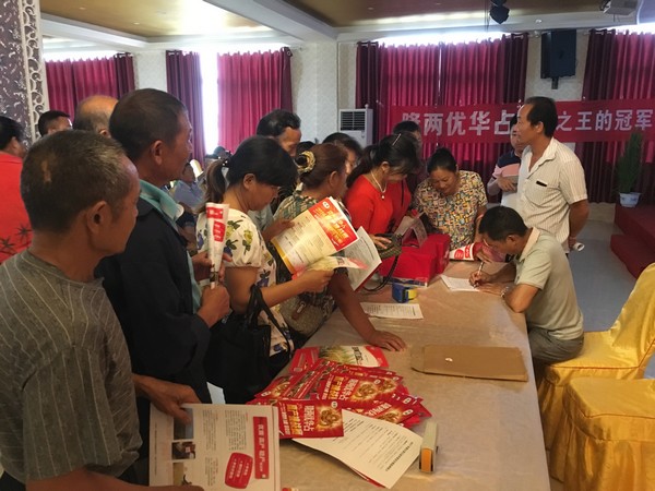 本次會(huì)議由當(dāng)代零售商王經(jīng)理主持。會(huì)議上,首先由代理商、農(nóng)藝師龍飛向在座農(nóng)民朋友講解了隆兩優(yōu)華占“超抗病、超高產(chǎn)、超抗倒、超優(yōu)質(zhì)”的四大優(yōu)勢(shì),并且播放PPT與大家分享了隆兩優(yōu)華占在全國(guó)各地的優(yōu)秀表現(xiàn)與審定情況,同時(shí)現(xiàn)場(chǎng)展示了隆兩優(yōu)華占植株抽穗后的良好長(zhǎng)勢(shì)。 接下來(lái),由姜總向大家講解了今年隆兩優(yōu)華占的預(yù)定政策與優(yōu)惠政策,并表達(dá)了自己的美好希冀。然后,主持人王經(jīng)理又著重強(qiáng)調(diào)了隆兩優(yōu)華占的四大優(yōu)勢(shì)特點(diǎn),并組織了有獎(jiǎng)問(wèn)答,農(nóng)民熱情高漲,踴躍參與。借著高漲的氛圍,預(yù)訂的場(chǎng)面隨之拉開(kāi)了帷幕。