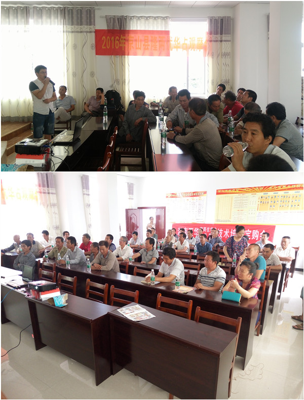 上午10點(diǎn)整,石龍鎮(zhèn)經(jīng)銷商吳永祥召集當(dāng)?shù)?5位農(nóng)戶在石龍鎮(zhèn)張灣村黨員活動中心召開訂購會。會上,湖南亞華種子有限公司黃凱經(jīng)理對隆兩優(yōu)華占的安全性、特征特性、各地優(yōu)秀表現(xiàn)做了詳細(xì)的講解。同時(shí)對種子預(yù)定模式的重要性進(jìn)行分析,鼓勵(lì)老百姓提前預(yù)定好的品種。然后,京山縣代理商張群對隆兩優(yōu)華占的栽培技術(shù)要點(diǎn)給農(nóng)民進(jìn)行栽培技術(shù)培訓(xùn),還強(qiáng)調(diào)了隆兩優(yōu)華占是個(gè)強(qiáng)勢、安全、能給老百姓帶來豐收的好品種,種子在全國各地非常搶手,種子將會缺貨,鼓勵(lì)農(nóng)戶積極預(yù)定種子。