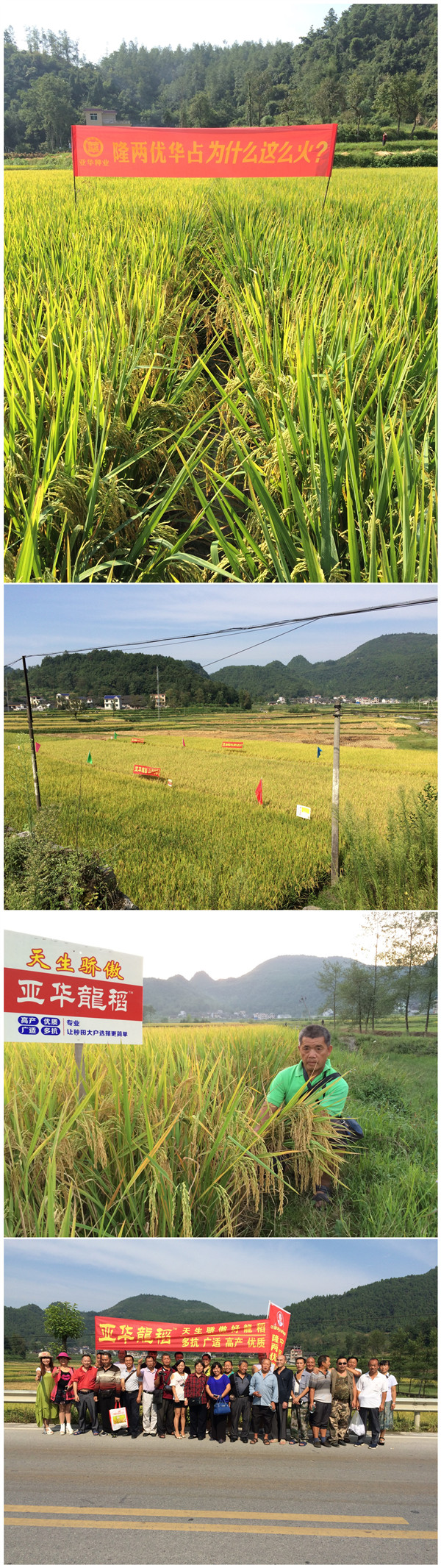 2016年9月3日,花垣縣數(shù)十位主要經(jīng)銷商齊聚在龍?zhí)逗渔?zhèn),只為再次目睹亞華龍稻的完美表現(xiàn)。在田間,彩旗飄飄,陣勢(shì)比去年更勝一籌。