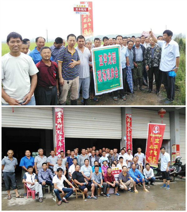 2016年9月14日,在銅都德興成功召開了亞華龍稻觀摩會,連續(xù)的陰雨天氣絲毫沒有影響大家想要一睹亞華龍稻的心情,來自德興各鄉(xiāng)鎮(zhèn)40余名零售商和種田大戶來到黃柏鄉(xiāng)的觀摩田里,只為見證亞華龍稻的傳奇。