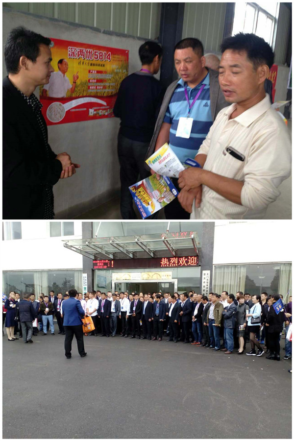 我們?cè)缭绮贾煤谜刮?,在最顯眼的地方拉起了橫幅貼好海報(bào),準(zhǔn)備好展位所有東西等待客戶到來(lái),8點(diǎn)人陸續(xù)進(jìn)場(chǎng),9點(diǎn)爆滿,進(jìn)來(lái)第一眼就看到我們隆兩優(yōu)華占的橫幅——中國(guó)種業(yè)新傳奇隆兩優(yōu)華占,客戶直接來(lái)到我們展位看宣傳片、了解產(chǎn)品情況,亞華種業(yè)的姜總、黃經(jīng)理、王經(jīng)理對(duì)客戶的問(wèn)題一一做詳細(xì)解答。來(lái)問(wèn)詢的客戶來(lái)自全國(guó)各地,有種過(guò)隆兩優(yōu)華占的,有種過(guò)深兩優(yōu)5814的,也有全新客戶,經(jīng)過(guò)講解,客戶對(duì)隆兩優(yōu)華占表示有濃厚興趣,都紛紛主動(dòng)拿走資料留下名片。