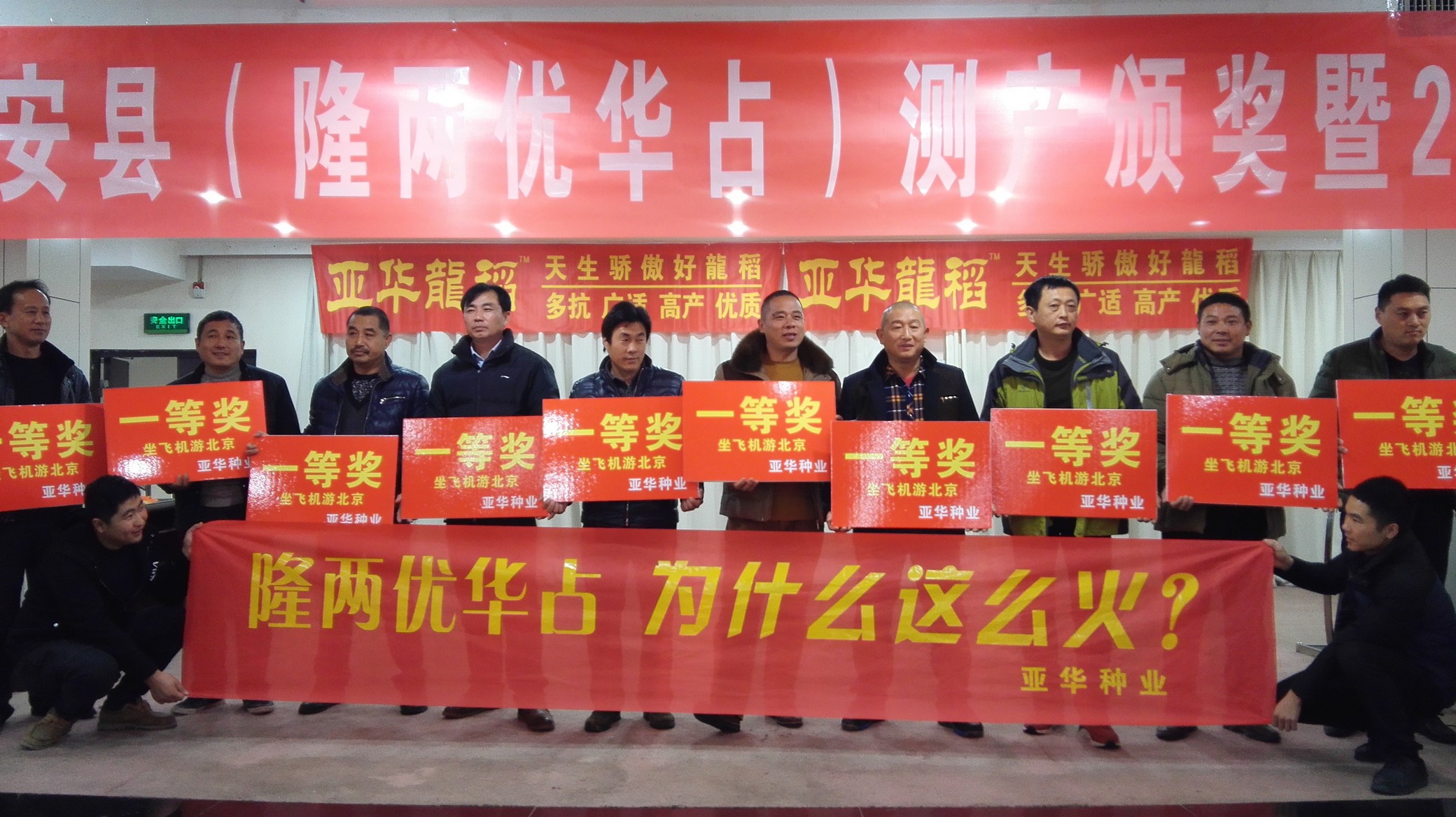 2016年11月23日,來安初雪,天氣嚴(yán)寒,在滁州市宜萬佳糧油棉專業(yè)合作社的組織下,我們于來安縣白云賓館隆重召開了“2016年來安縣隆兩優(yōu)華占測產(chǎn)頒獎暨2017年市場銷售啟動會”,參會人員150余人,大會場面紅火熱鬧,與窗外判若冬夏。