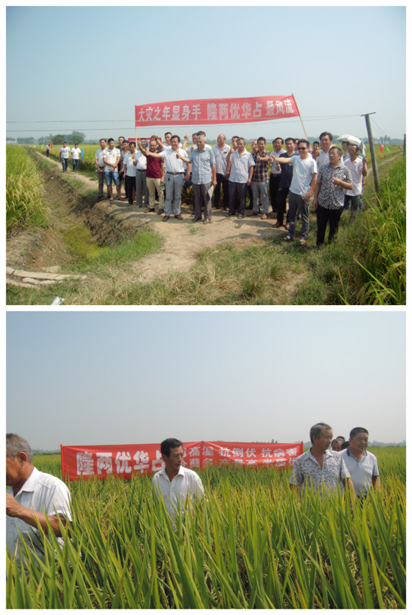 2016年9月11號早上8點,室內(nèi)會議現(xiàn)場已經(jīng)布置好,經(jīng)銷商陸陸續(xù)續(xù)抵達(dá),9點30分,喻總帶領(lǐng)一行五十多人驅(qū)車前往位于吳臺村的觀摩現(xiàn)場,經(jīng)銷商圍繞隆兩優(yōu)華占觀摩田繞了一圈,仔細(xì)察看了隆兩優(yōu)華占的結(jié)實率情況,紛紛表示贊揚。