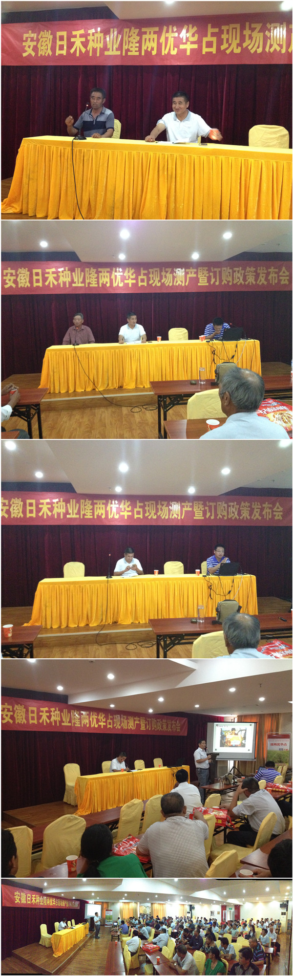 2016年9月14日,正直2016年中秋節(jié)前夕,安徽日禾種業(yè)六安分公司在六安市隆重召開了隆兩優(yōu)華占現(xiàn)場測產(chǎn)暨訂購政策發(fā)布會。隆兩優(yōu)華占一如既往的超強(qiáng)優(yōu)勢,在參會零售商和種田大戶中造成了轟動效果。