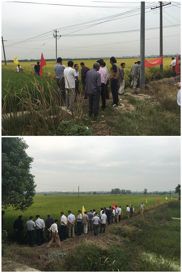 2016年9月21號由合肥潤禾農(nóng)業(yè)科技有限公司組織肥西縣近百人的零售商及種田大戶,浩浩蕩蕩的趕到位于四豐公路旁的中國龍稻--隆兩優(yōu)華占示范田。