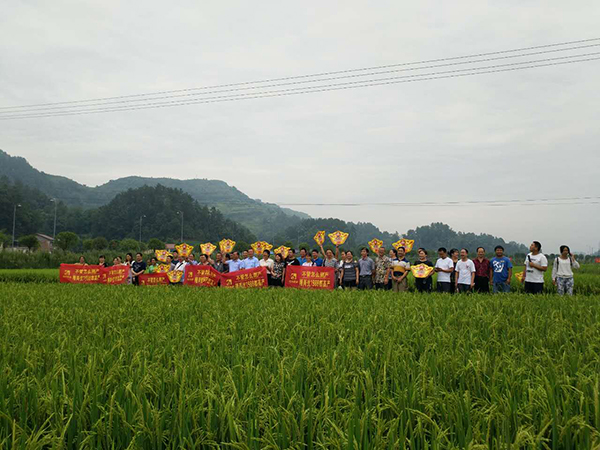 在2017年初百分農(nóng)業(yè)將隆兩優(yōu)1988(財(cái)神稻)重慶省級示范田設(shè)在南川區(qū)大觀鎮(zhèn)。大觀鎮(zhèn)是一個(gè)全國鄉(xiāng)村旅游示范區(qū),為了讓廣大農(nóng)戶更加富裕,黨和國家在行動,湖南百分農(nóng)業(yè)也在行動,百分農(nóng)業(yè)為南川老百姓帶帶來了“財(cái)神稻”。