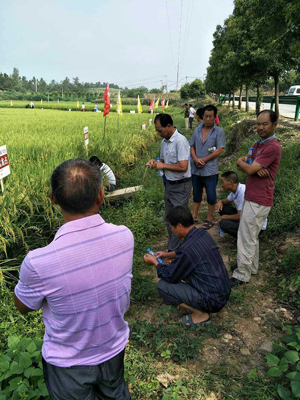 8月21日早上7點,30多名經(jīng)銷商和種植大戶準時到達宜城,由代理商鄭平帶往70公里外的棗陽吳店鎮(zhèn)沈范村參觀晶兩優(yōu)龍占的示范田。一路上,各位合作伙伴和種植大戶都非常期待。