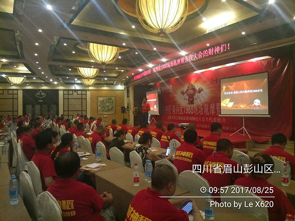 25日上午10時許,在彭山縣富一酒店16樓召開了室內(nèi)會議,由百分農(nóng)業(yè)西南大區(qū)經(jīng)理楊總主持。百分農(nóng)業(yè)總經(jīng)理就當(dāng)前的種業(yè)形式、百分農(nóng)業(yè)未來的運作思路,品種資源以及就財神稻隆兩優(yōu)1988和四川壹稼人的合作進行了詳細的闡述,讓四川各地的經(jīng)銷商,種植大戶對隆平、亞華、百分的關(guān)系有了更清晰的認識,對財神稻的運作有了更詳細的了解。百分西南大區(qū)楊總就目前我們農(nóng)資界所面臨的問題以及如何解決給大家做了精彩的分享。燕總針對四川的實際地域情況給大家分享了他運作兩系的經(jīng)驗以及為什么選擇了財神稻隆兩優(yōu)1988,同時把財神稻的市場運作細則,價格體系都作了詳細地演示,得到了各地經(jīng)銷商的一致好評。