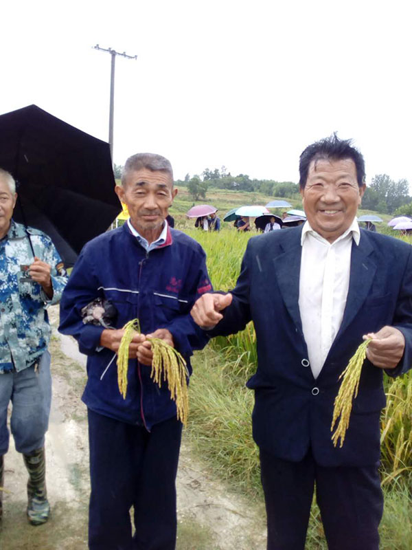 今年湖北廣水地區(qū)高溫、大風,很多品種出現(xiàn)結實率不好或倒伏現(xiàn)象,而財神稻——隆兩優(yōu)1988表現(xiàn)出來的結實率高、超抗倒的特性,得到了零售商和大戶們的特別青睞。聽說有這種好品種,一傳十、十傳百,大家都想來見識一下。廣水蔡河鎮(zhèn)有隆兩優(yōu)1988百畝示范田。于是2017年9月2日,廣水隆兩優(yōu)1988代理商陳國奇陳總帶領大家來到該示范田觀摩。